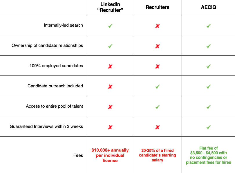 Knowing that I had been "shortlisted" for a new opportunity was a game changer for me to even consider an employment change; and working with AECIQ was definitely more results oriented. I ended up accepting an offer to leave my previous firm to join Todd & Associates, Inc. In my new role, I am responsible for hiring and am using AECIQ to get me access to the best and brightest candidates.